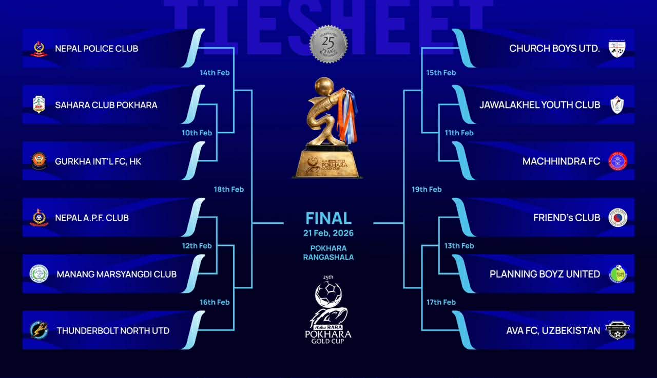 पाेखरा । माेफसलकै प्रतिष्ठित आहा ! रारा पोखरा गोल्ड कप फुटवल प्रतियोगिताको २५ औं संस्करण यही मंगलबारदेखि सुरु हुने भएको छ । सहारा क्लव पाेखराको आयोजनामा पोखरा रंगशालामा हुने प्रतियोगितामा [...]