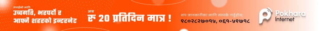 - पोखरा इन्टरनेटको तीज विशेष अफर, टुँडिखेलको तीज महोत्सवमा पोखरा इन्टरनेटको स्पोन्सर