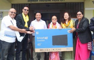 मातातिर्थ औंसीमा सहारा आधारभुत विद्यालयलाई स्मार्ट टि.भी हस्तान्तरण