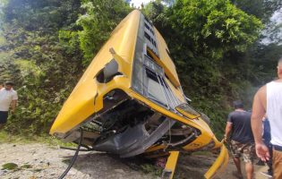 पोखरामा विद्यार्थी बोकेको स्कुल बस दुर्घटना (फाेटाेहरु)