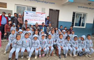 लोमन्थाङका विद्यार्थीलाई पोखरामा रोटरी क्लबले वितरण गर्यो न्यानो कपडा