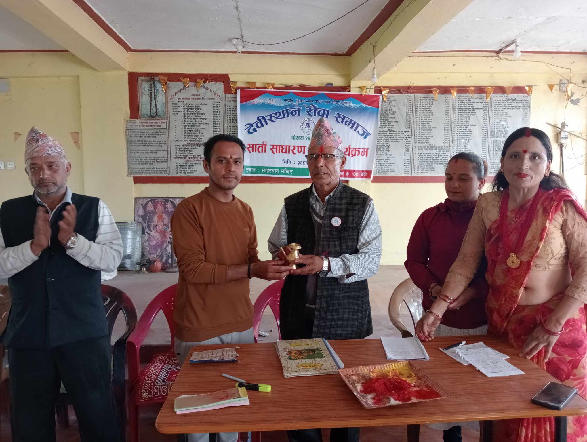 देवीस्थान सेवा समाजका अध्यक्ष प. हरिशरण पाैडेलले समाजका गतिविधिहरु अघि बढाउनका लागि सबैकाे साथ सहयाेगकाे अपेक्षा रहेकाे बताए ।