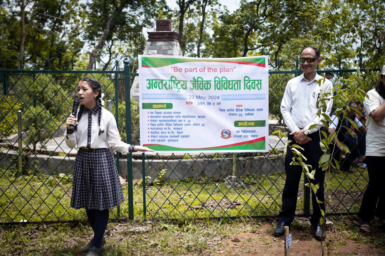 कार्यक्रममा पोखरा २२ का वडा अध्यक्ष निमलाल बराल, वरिष्ठ वन अधिकृत करुणा कार्की तथा विद्यार्थीहरु बन्दना अधिकारी, जेसिका थापा, मेलिना सारु मगर लगायतले जैविक विविधताको बारेमा बोलेका थिए ।