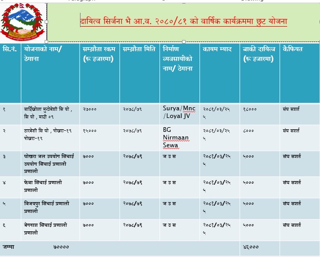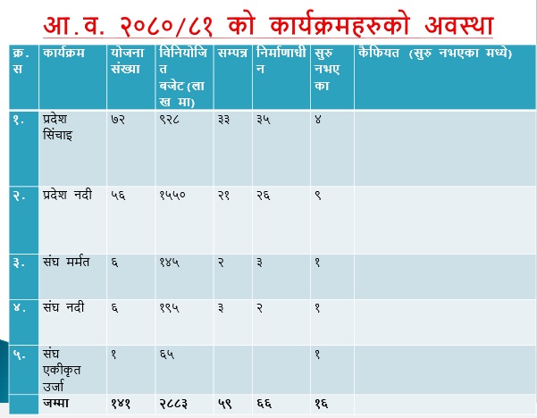 आ.व २०८०/८१ को कार्यक्रमहरुको अवस्था