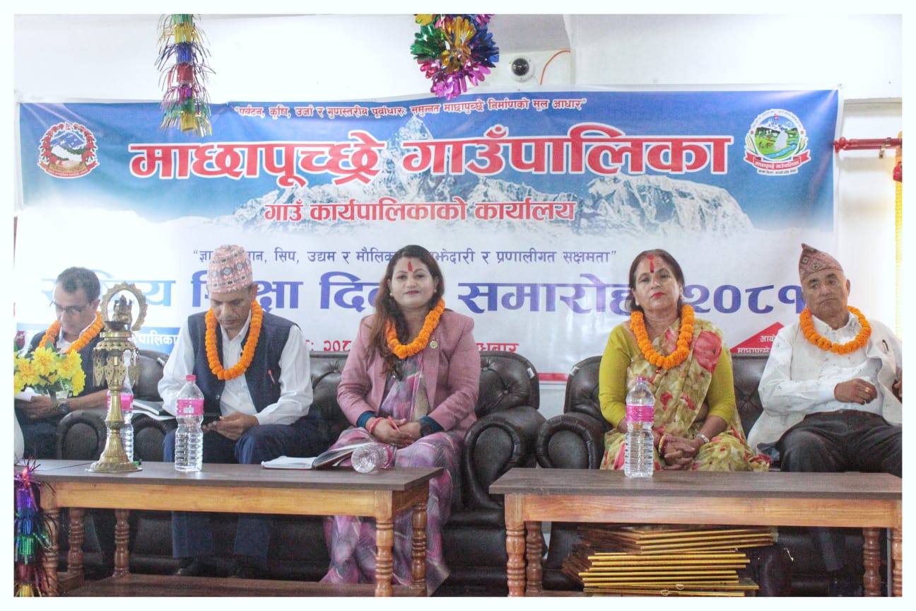 पोखरा । कास्कीको माछापुच्छ्रे गाउँपालिका शिक्षा,यूवा तथा खेलकोद शाखाले राष्ट्रि शिक्षा दिवस–२०८१ बिषेश समारोह बुधवार सम्पन्न गरेको छ ।