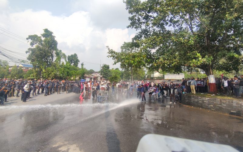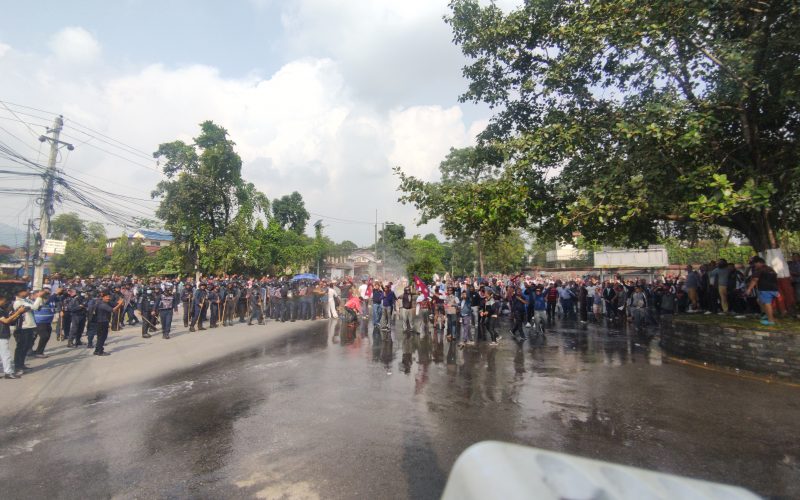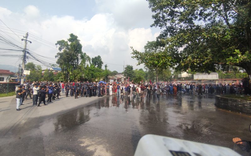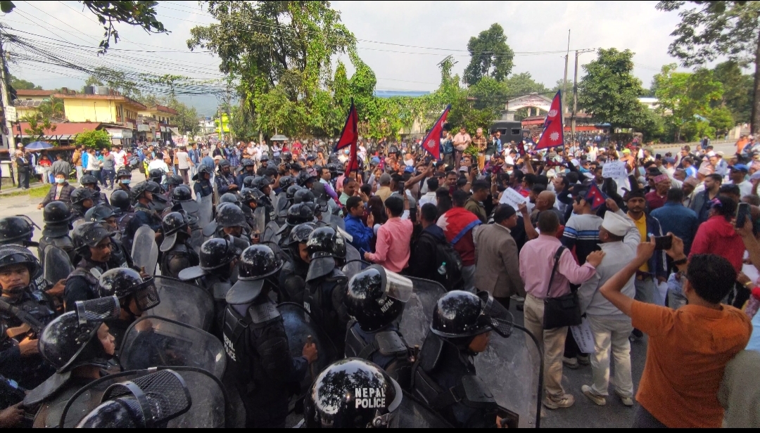 पोखरास्थित सहिद चोक आसपास क्षेत्रलाई निषेधित क्षेत्र घोषणा गरिए पनि रास्वपाका नेता कार्यकर्ताले सोही स्थानमा प्रदर्शन गरेका हुन् । तस्बिरहरू: