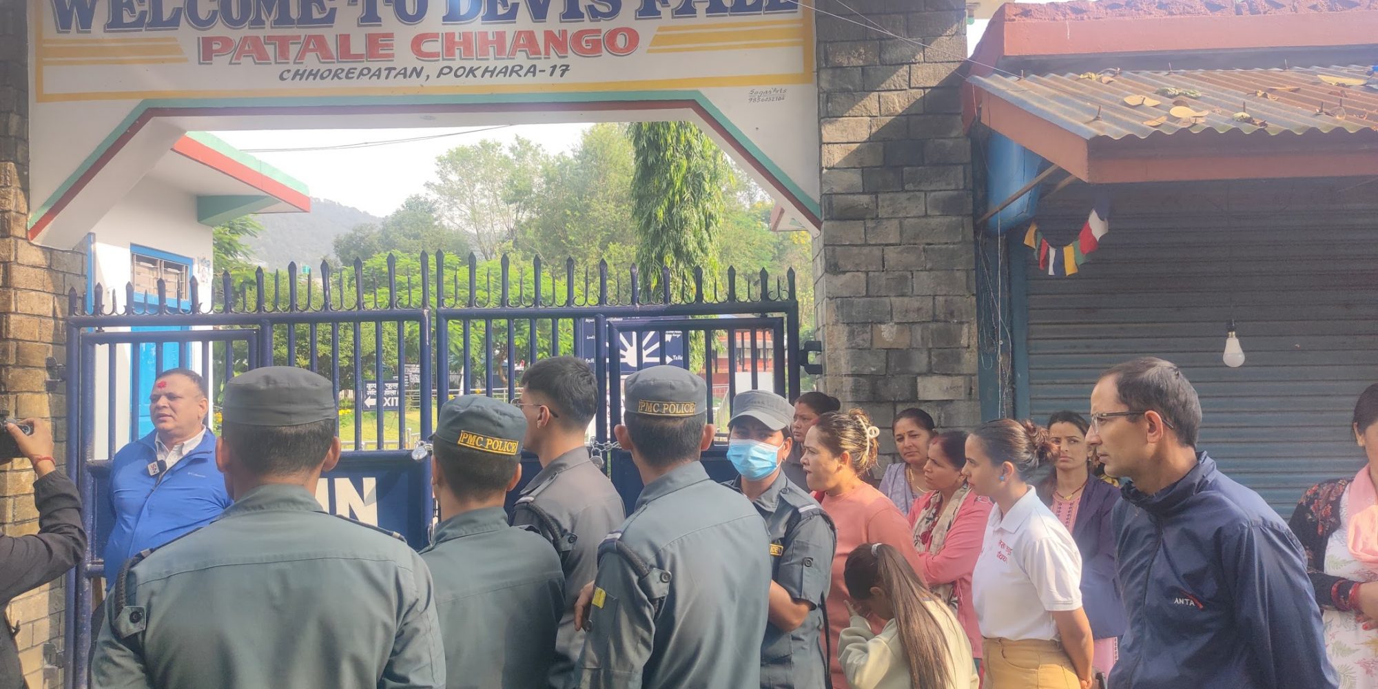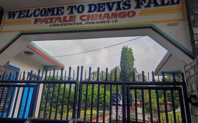 पोखरा । पोखरा १७ छोरेपाटनमा रहेको पाताले छाँगाे (डेभिज फल) मा छोरेपाटन मावि र स्थानीयले ताला लगाएका छन् । पोखरामा महानगरपालिकाले पाताले छाँगाेको आम्दानी आफुले राख्ने गरेर बिहीबारबाट काम थालेपछि स्थानीयले ताला लगाएका हुन् । उनीहरुले पर्यटकहरु प्रबेश गर्ने मुल गेटमा नै तीन वटा ताला लगाएका छन् ।