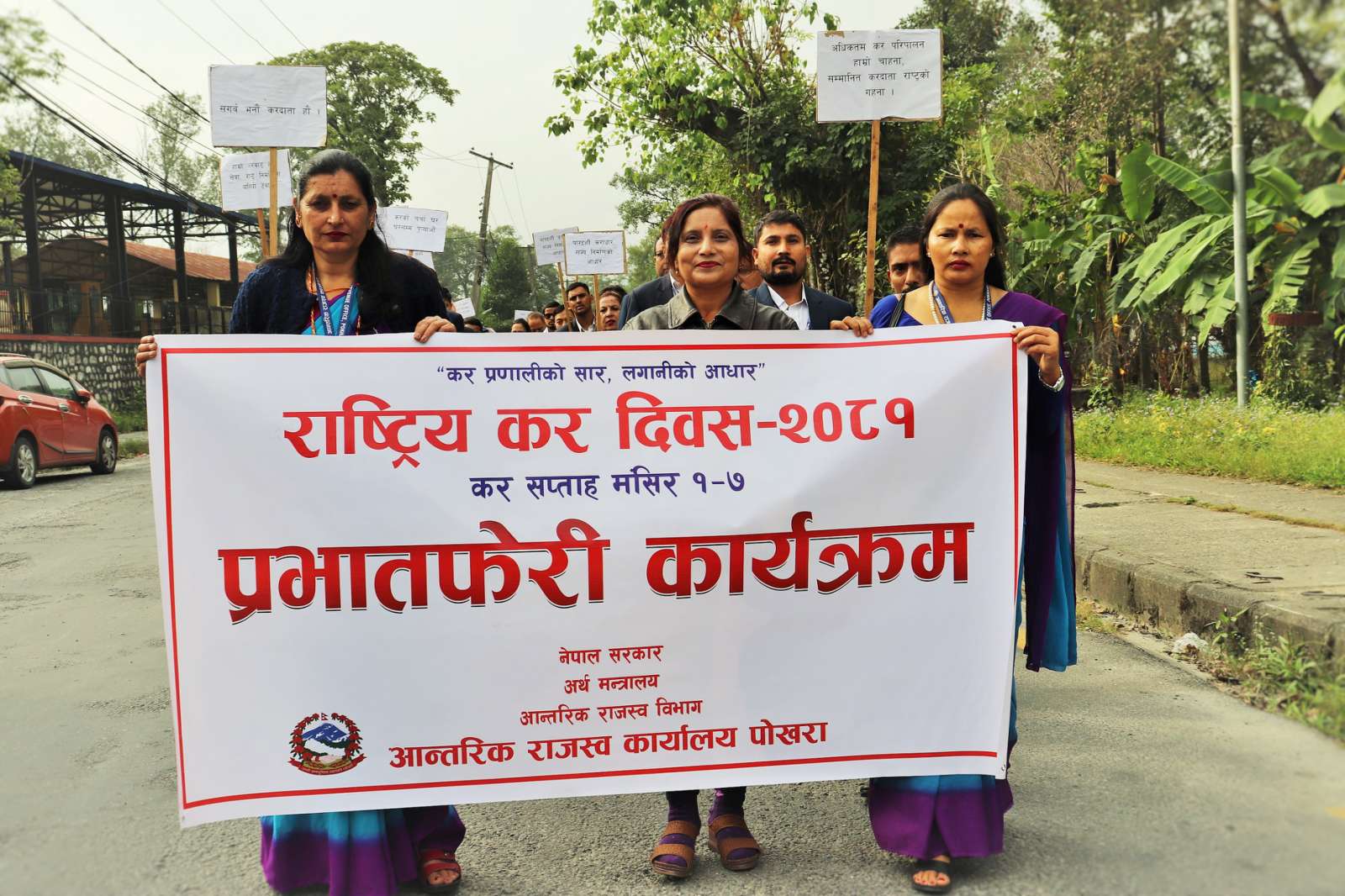 कर सप्ताहको पहिलो दिन पोखरा सभागृहदेखि आन्तरिक राजस्व कार्यालयसम्म प्रभातफेरी कार्यक्रम आयोजना गरिएको थियो। प्रभातफेरीमा सहभागीहरूले कर सम्बन्धी विभिन्न सन्देश अंकित प्लेकार्ड बोकेका थिए। कार्यक्रमको उद्घाटन गर्दै कार्यालयका प्रमुख कर अधिकृत शिव शर्माले करदाता र कर प्रशासनबीचको सम्बन्ध सुदृढ बनाउन कार्यालय प्रतिबद्ध रहेको बताए।