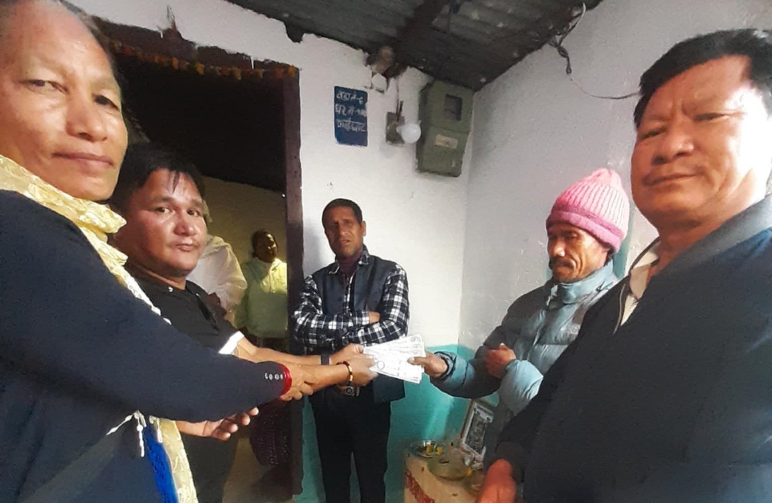 पोखरा । राष्ट्रिय भूमिअधिकार मञ्च कास्कीले पोखरा गाइघाट निवासी एक विपन्न परिवारलाई आर्थिक सहयोग प्रदान गरेको छ। मञ्चले आइतबार, पोखरा महानगरपालिका वडा नं. ६, वैदाम स्थित सुर्य परियारको निवासमा पाँच हजार रुपैयाँ आर्थिक सहयोग गरेको हो।
