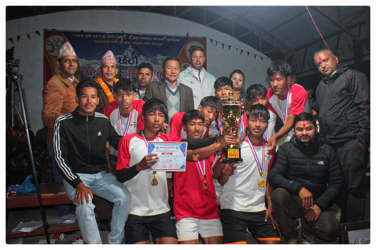 पोखरा । माछापुच्छ्रे गाउँपालिकाको आयोजनामा भएको छैठौं राष्ट्रपति रनिङ शिल्ड प्रतियोगिताको उपाधि लाहाचोकस्थित ज्ञानज्योति बोर्डिङ स्कूलले जितेको छ। माछापुच्छ्रे गाउँपालिका क्षेत्रका १२ विद्यालयहरूको सहभागितामा भएको यो माध्यमिक विद्यालय स्तरीय प्रतियोगितामा ज्ञानज्योति बोर्डिङले ५ स्वर्ण, २ रजत, र १ कास्य जितेर पहिलो स्थान हासिल गरेको हो। यससँगै विद्यालयले नगद १५ हजार रुपैयाँ र प्रमाणपत्र प्राप्त गरेको छ।