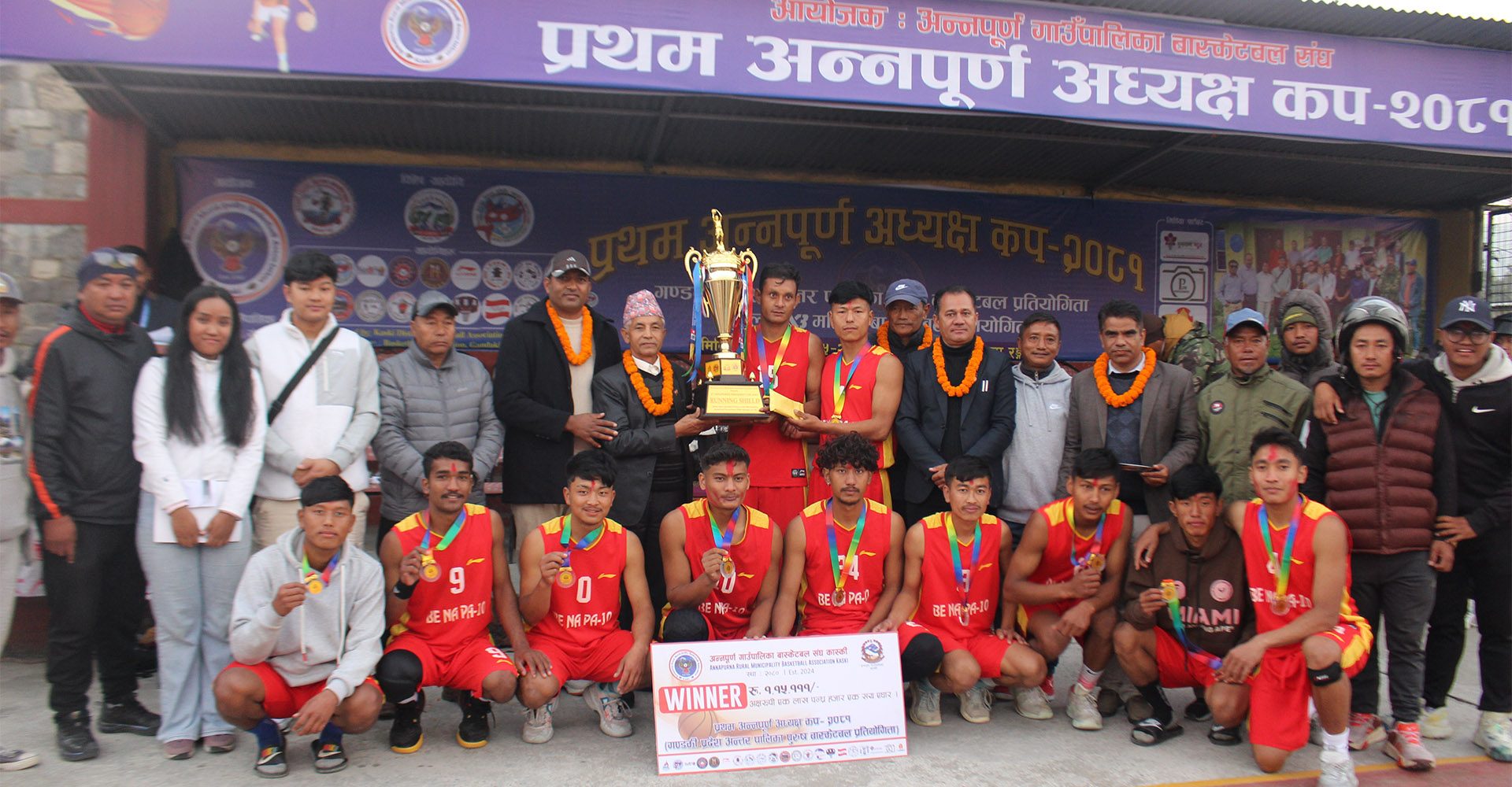 कास्कीको अन्नपूर्ण गाउँपालिका बास्केटबल संघको आयोजनामा पोखरा रंगशाामा मंसिर २५ देखी २९ गतेसम्म प्रथम अध्यक्ष कप पालिकास्तरीय पुरुष तथा महिला बास्केटबल प्रतियोगिता भएको थियो ।