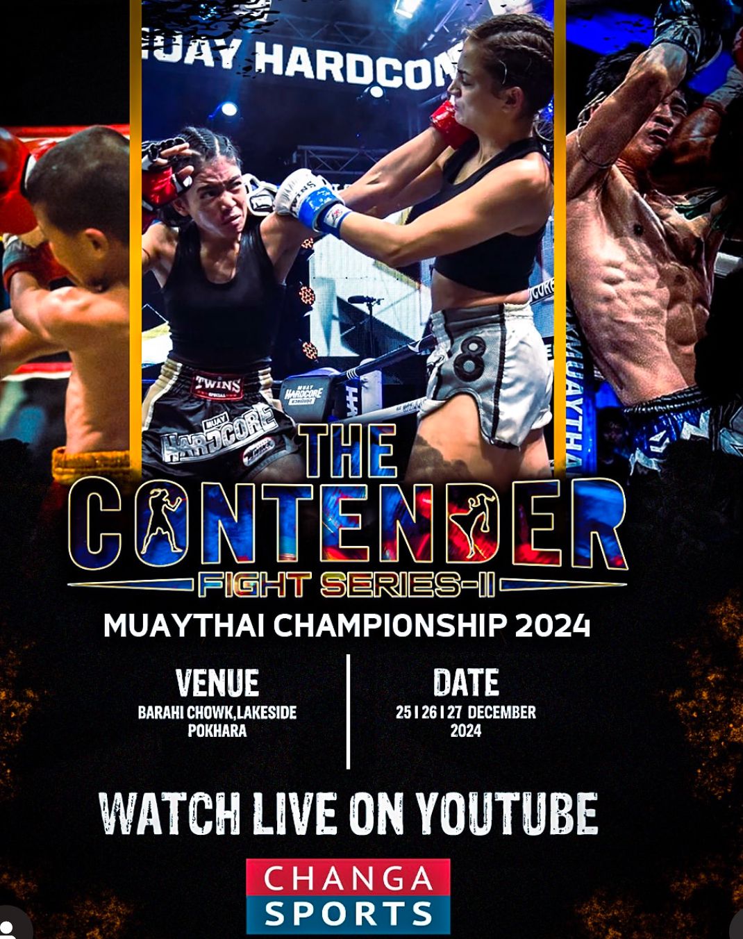 पोखरा । पोखराको लेकसाइडस्थित बाराही घाट खेल मैदानमा पौष १० देखि १२ गतेसम्म थाई-बक्सिङको राष्ट्रिय प्रतियोगिता “कन्टेन्डर सिरिज–२” आयोजना हुँदैछ।