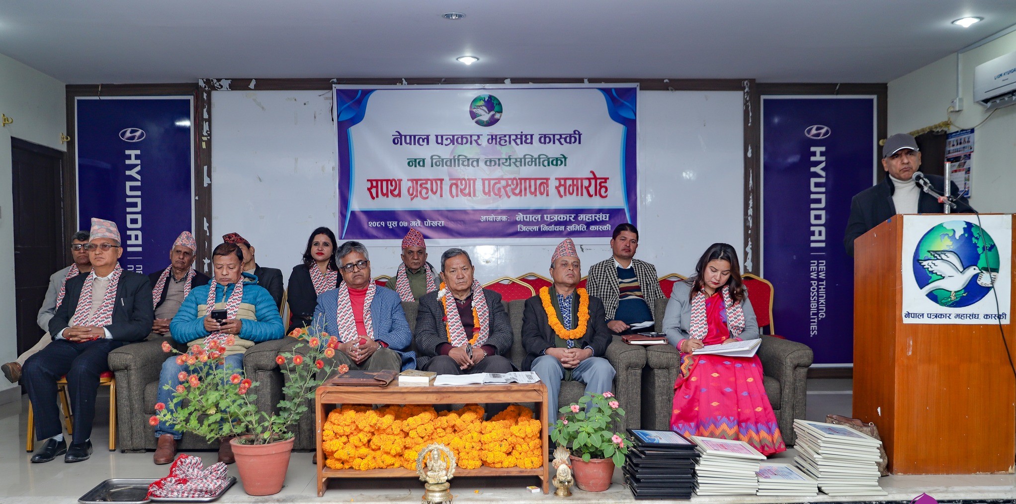नेपाल पत्रकार महासंघ कास्कीमा नव निर्वाचित कार्यसमितिको सपथ ग्रहण तथा पदस्थापना कार्यक्रम सम्पन्न भएको छ ।