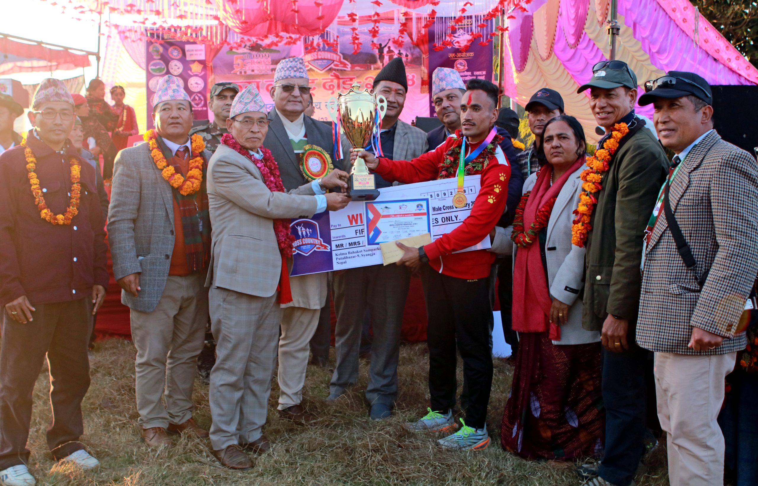 पुतलीबजार नगरपालिका–९ कोल्मा बराहचौरबाट सुरु सतीडाँडा, काउले, थुम्की डाँडा, जिमिरे मन्दिर हुँदै पुन बराहचौरमा आएर टुङ्गिएको हो । त्यसैगरी २१ वर्षमुनिका पुरुषतर्फ १० किलोमिटर क्रस कन्ट्री दौडको उपाधि सनम गुरुङले हात पारे । निर्धारित दुरी ४६ मिनेट ३५ सेकेन्डमा पार गर्दै गुरुङले उपाधी सहित नगद १५ हजार, ट्रफी, मेडल र प्रमाणपत्र प्राप्त गरे उपविजेता सल्यानका रुद्र बुढाथोकीले ५० मिनेट १४ सेकेन्डमा दूरी पार गरे ।