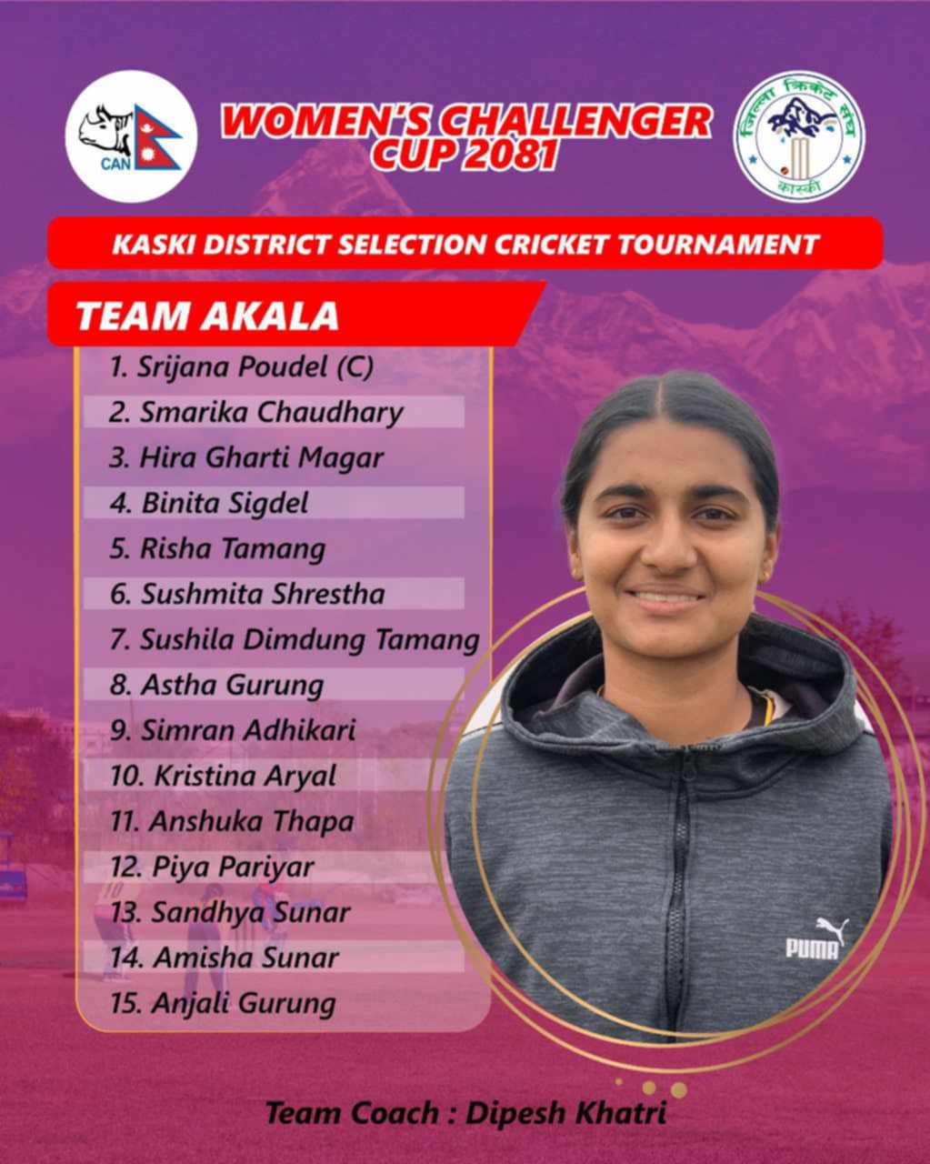 कास्की जिल्ला क्रीकेट संघको आयोजनामा पोखरा रंगशालास्थित क्रीकेट मैदानमा प्रतियोगिता सञ्चालन भएको थियो । चार टिम सहभागि तीन दिनसम्म चलेको प्रतियोगितामा टिम भद्रकाली, अकला र विन्ध्यवासिनीले समान ३ खेल खेल्दा २ जित र १ हार व्यहोर्दै समान ४–४ अंक प्राप्त ग¥यो । टिम बाराही भने ३ खेलमै हार व्यहोर्दै जितिविहिन भयो ।