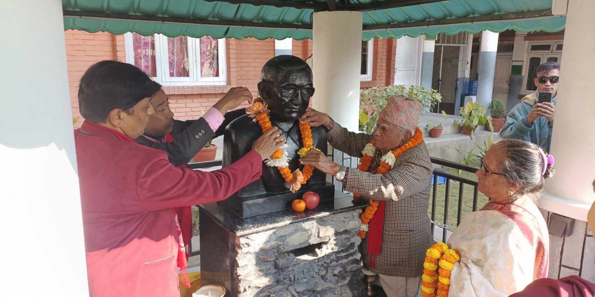 शालिक शनिबार एक कार्यक्रमका बीच शिक्षाविद् जर्ज जोनले अनावरण गरे । स्व. कायस्थको स्मरणमा विद्यालय परिसरमा शालिक निर्माण गरिएको हो ।