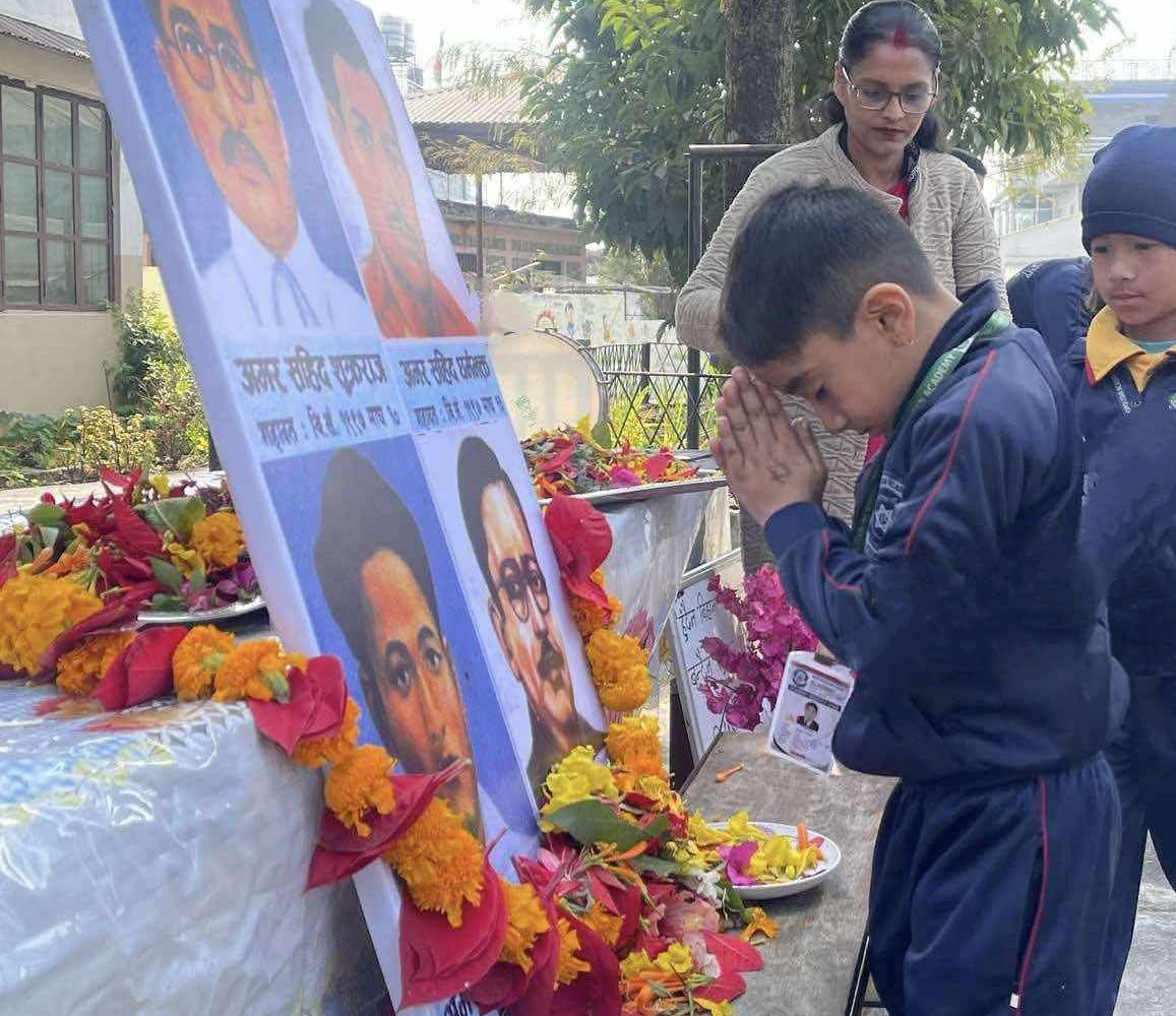 विद्यालयका प्राचार्य गोविन्द प्रसाद सुवेदीको अध्यक्षतामा भएको उक्त कार्यक्रममा विद्यालय संस्थापक अनिता तिमिल्सिना, बिद्यालय निरिक्षक इन्द्रराज बराल, सम्पूर्ण शिक्षक ,कर्मचारी विद्यार्थीले, सहिदको तस्बिरमा माल्यार्पण र पुस्पाञजली अर्पण गर्नुको साथै १ मिनेट मौन धारण गरि भावपुर्ण श्रद्धाञ्जली अर्पण गरिएको थियो।