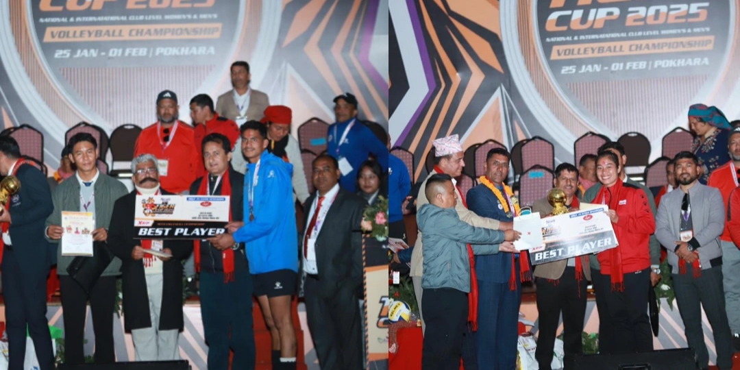 पोखरा । पहल गहतराज र अम्फा सोमसुरात एनसेल पाँचौं टाइगर कप राष्ट्रिय तथा अन्तर्राष्ट्रिय भलिबल प्रतियोगिताको सर्वाेत्कृष्ट खेलाडी बनेका छन् ।