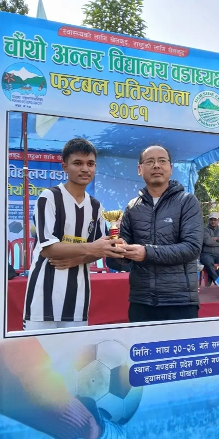 पोखरा । पोखराको ड्याम साइड क्लबको आयोजनामा जारी चौथो संस्करणको अन्तरबिद्यालय वडा अध्यक्ष कप फुटबल प्रतियोगिता २०८१, ४ खेलसँगै अत्यन्तै रोमाञ्चक मोडमा पुगेको छ । प्रतियोगिता पोखरा महानगरपालिका वडा नम्बर १७ को सहयोगमा आयोजना गरिएको हो, जहाँ १९ वटा विद्यालयका युवा फुटबल खेलाडीहरूले आफ्नो क्षमता प्रदर्शन गरे।