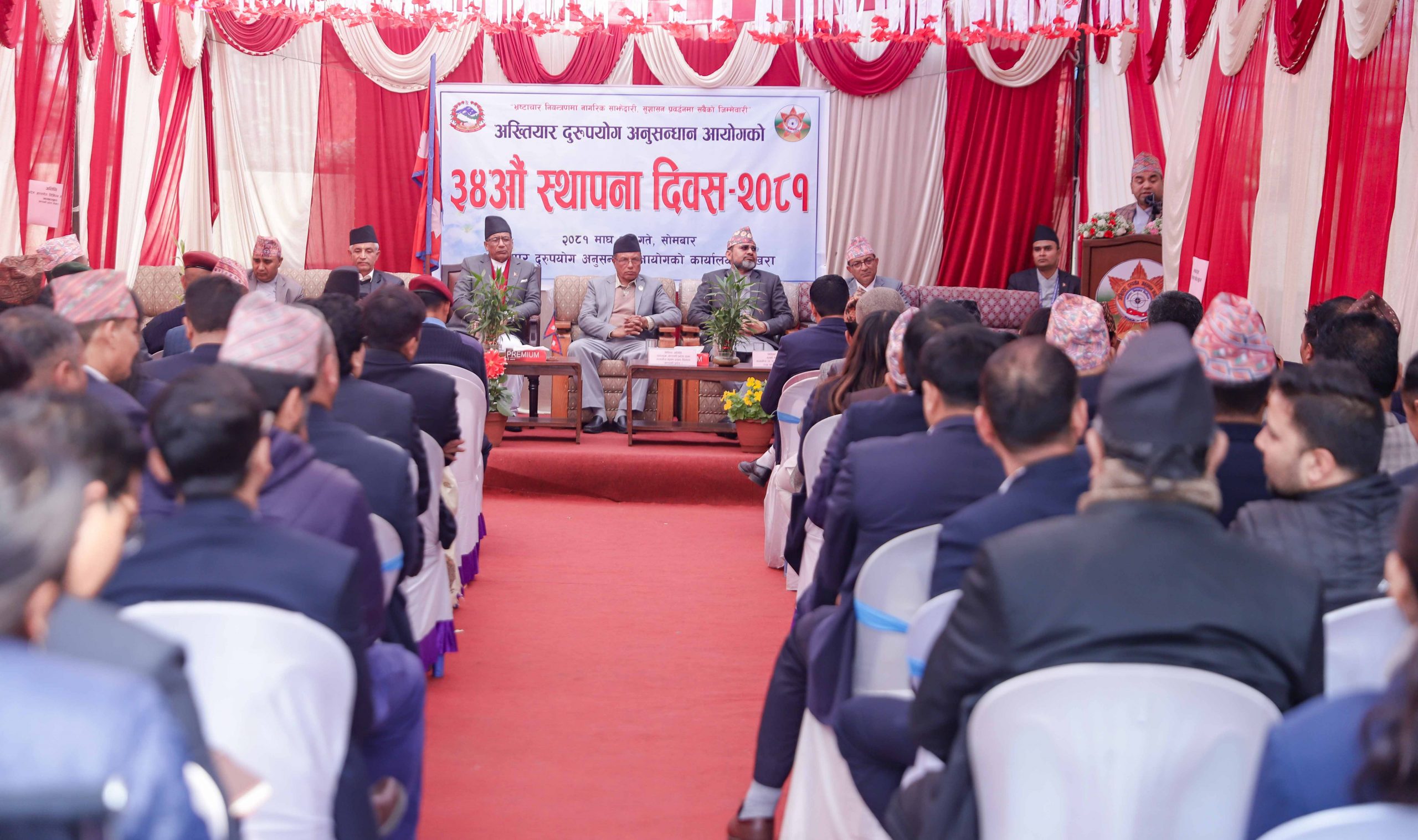 अख्तियार दुरुपयोग अनुसन्धान आयोगको ३४ औं स्थापना दिवसको अवसरमा पोखरा कार्यालयले आयोजना गरेको स्थापना दिवस विशेष समारोहका प्रमुख अतिथि भट्टले भ्रष्टाचार विरुद्धको लडाई सबैको साझा लडाई भएको बताउनुभयो ।‘नेपालको संविधानले दिगो शान्ति, सुशासन, समृद्धि र विकासको परिकल्पना गरेको छ।