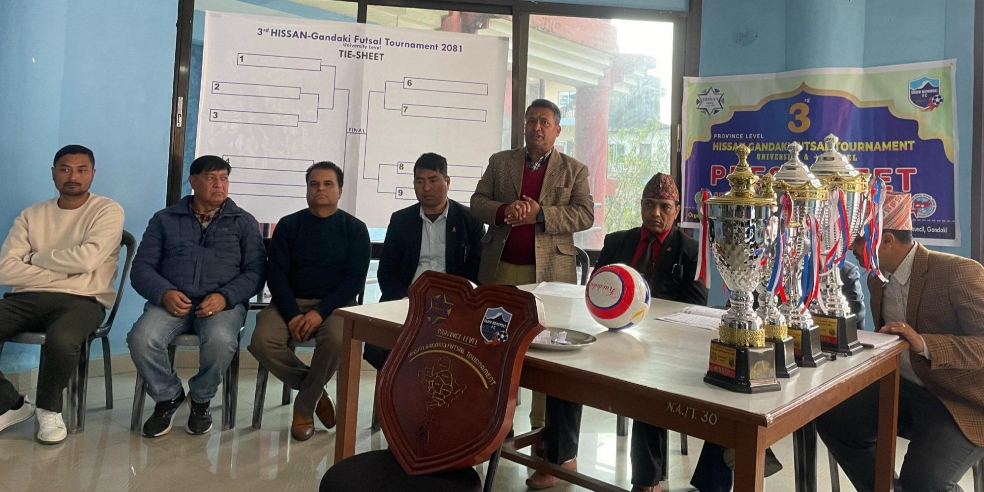 पोखरा । गण्डकी प्रदेशमा विद्यालय र कलेजस्तरीय फुटसललाई प्रवर्द्धन गर्ने उद्देश्यले तेस्रो प्रदेशस्तरीय हिसान प्लस टु तथा कलेज फुटसल प्रतियोगिता फागुन ४ गतेदेखि सुरू हुँदैछ।