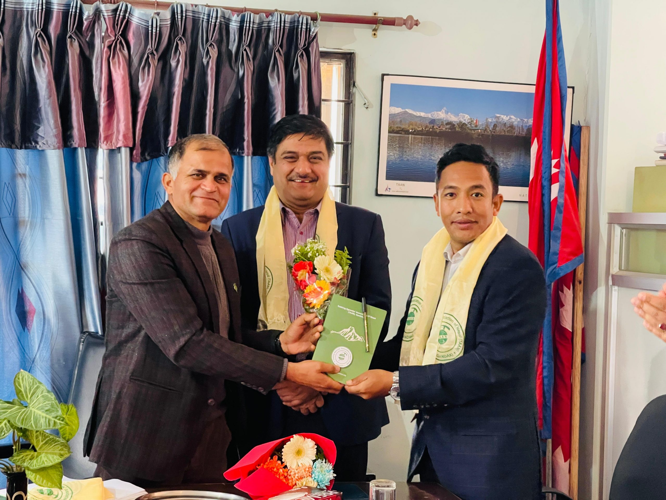 पोखरा । नेपाल पर्यटन बोर्ड, गण्डकी प्रदेश कार्यालयका नवनियुक्त निर्देशक मणिराज लामिछानेलाई ट्रेकिङ एजेन्सी एशाेसिएसन अफ नेपाल (टान) गण्डकीले स्वागत गरेकाे छ ।उनीसँगै बरिष्ठ अधिकृत युवराज गुरुङ र लेखा अधिकृत सागर श्रेष्ठलाई पनि टान गण्डकी साेमबार स्वागत गरेकाे हाे ।