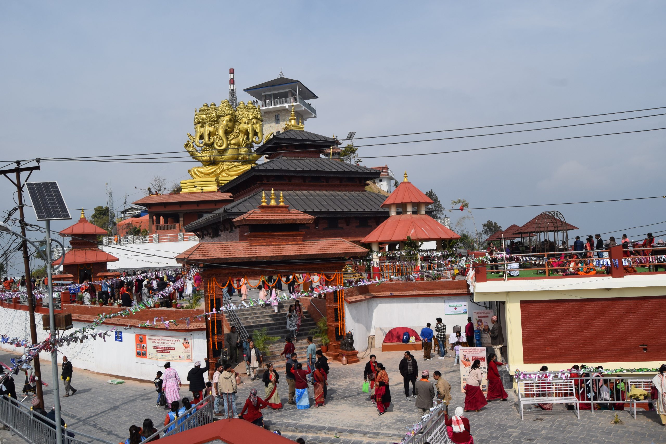 हेलीकप्टर मार्फत काठमाण्डौंबाट सिधै सराङकोट धाम पुगी उनले सराङकोट टपमा निर्माण भएका विशाल पञ्चमुखि गणेश मुर्ति, कैलाशेश्वर शिव मन्दिर, १०८ शिवलिङग तथा जलधारा, ऐतिहासिक भूमेकालिका तथा भैरव मन्दिर सहितका धार्मिक संरचना एवम् त्यहाँ जारी श्रीमद्भागवत् ज्ञानमहायज्ञ एवम् धार्मिक पर्यटन महाउत्सवको विधिपूर्वक पुजाअर्चना गरी उद्घाटन गरे ।