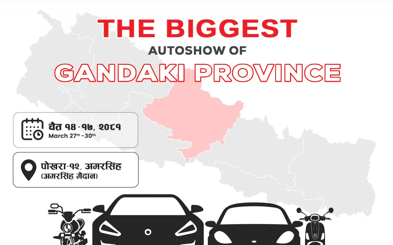पोखरामा पहिलो पटक हुन लागेको नाडा प्रिजेन्ट्स वाडा अटो सो २०२५ को तयारी पुरा भएको छ । पश्चिमाञ्चल अटोमोबाइल डिलर्स एसोसिएसन (वाडा) ले पोखरामा गर्न लागेको नाडा प्रिजेन्ट्स ‘वाडा अटो सो २०२५’ को सम्पुर्ण तयारी पुरा भएको तथा बिहिबार विहान ११ बजेदेखि औपचारिक रुपमा शुरु हुने कार्यक्रम संयोजक एवम वाडाका उपाध्यक्ष निरन केसीले बताए ।