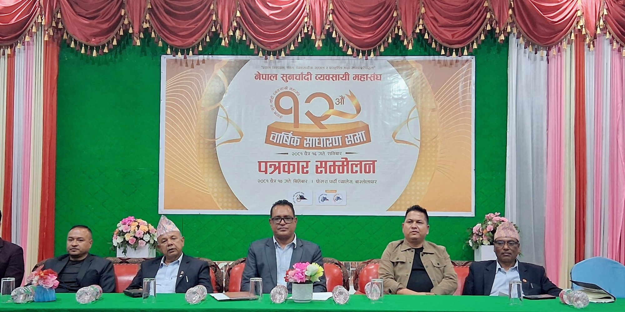 पोखरा । नेपाल सुनचाँदी व्यवसायी महासंघको १२औं वार्षिक साधारण सभा आगामी चैत १६ गते पोखरामा आयोजना गर्न लागिएको छ। महासंघले पोखरामा पत्रकार सम्मेलन आयोजना गर्दै सभाका प्रमुख एजेन्डा र सहभागीहरूको बारेमा जानकारी दिएको हो।