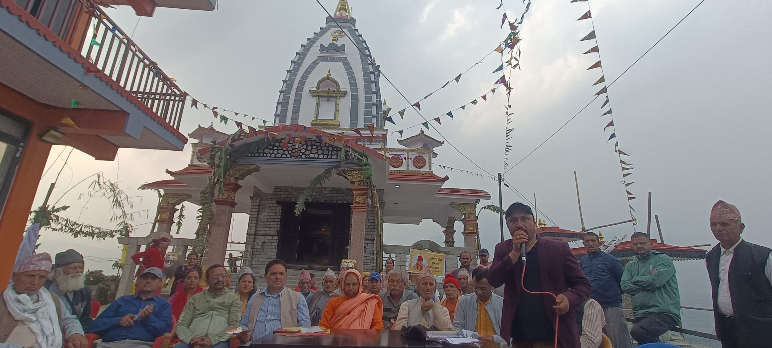 उनले श्रद्वालु भक्तजन मन र देवीकाे कृपाले छाेटाे समयमै १३ गजुरयुक्त श्रीदुर्गा मन्दिर करिब रु. २ करोडको लागतमा निर्माण गर्न सफल भएकाे उल्लेख गरे ।