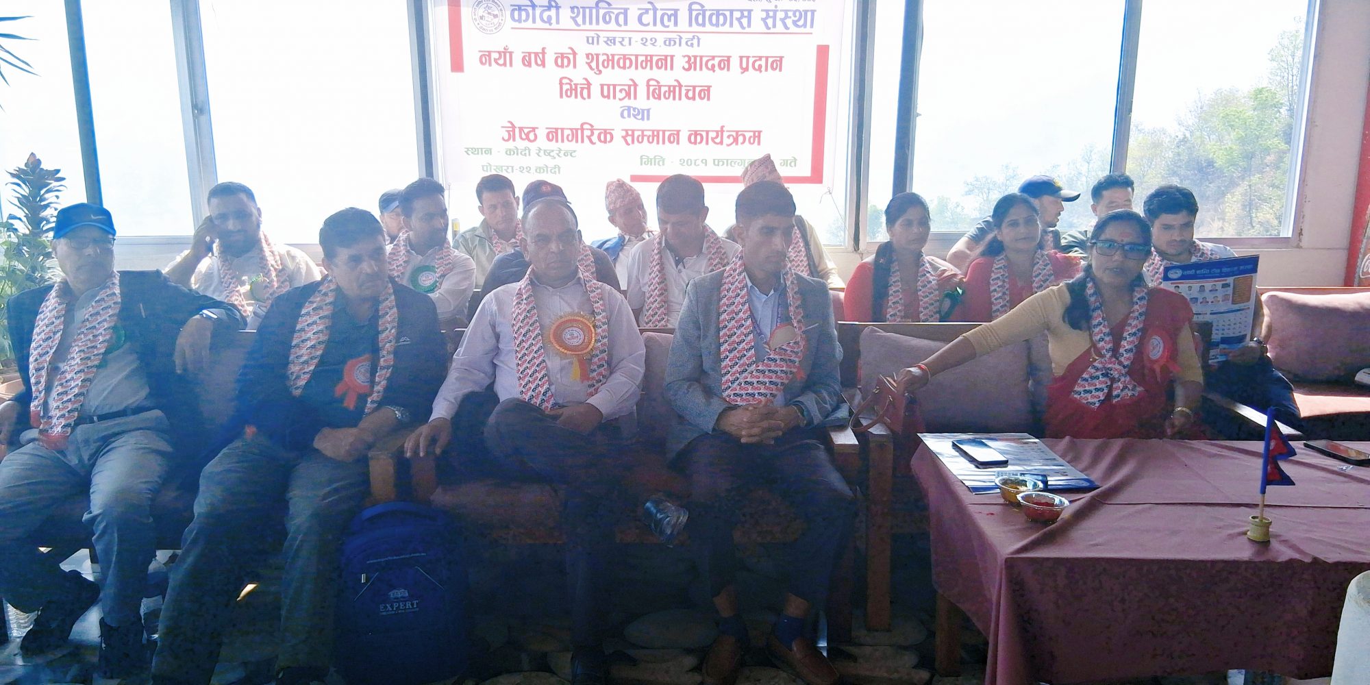 पोखरा । जेष्ठ नागरिकको योगदानको सम्मान गर्दै कोदी शान्ति टोल विकास संस्थाले पोखरा-२२ मा जेष्ठ नागरिकलाई सम्मान गरेकाे छ ।