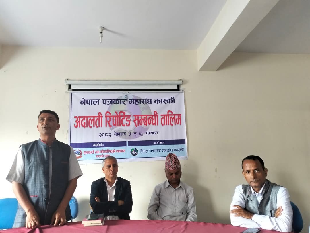 नेपाल पत्रकार महासंघ कास्कीले पत्रकारहरुका लागि अदालती रिपोर्टिङ सम्बन्धी तालिम दिएको छ ।