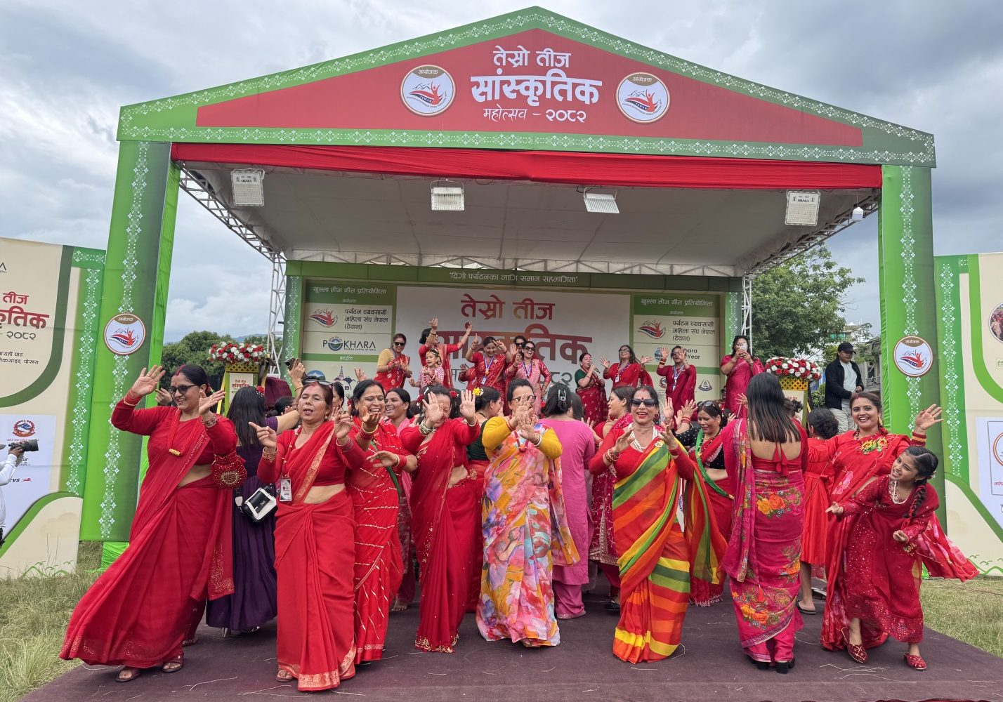 पर्यटन व्यवसायी महिला संघ नेपाल (टेवान) को आयोजनामा मंगलबारदेखि पोखराको लेकसाइडस्थित बाराहीघाट चौरमा ‘तेस्रो तीज सांस्कृतिक महोत्सव–२०८२’ सुरु भएको छ । हरितालिका तीजको अवसरमा आयोजित महोत्सवको उद्घाटन गण्डकी प्रदेशका सामाजिक विकास, युवा तथा खेलकुदमन्त्री बिन्दुकमार थापाले गरे ।