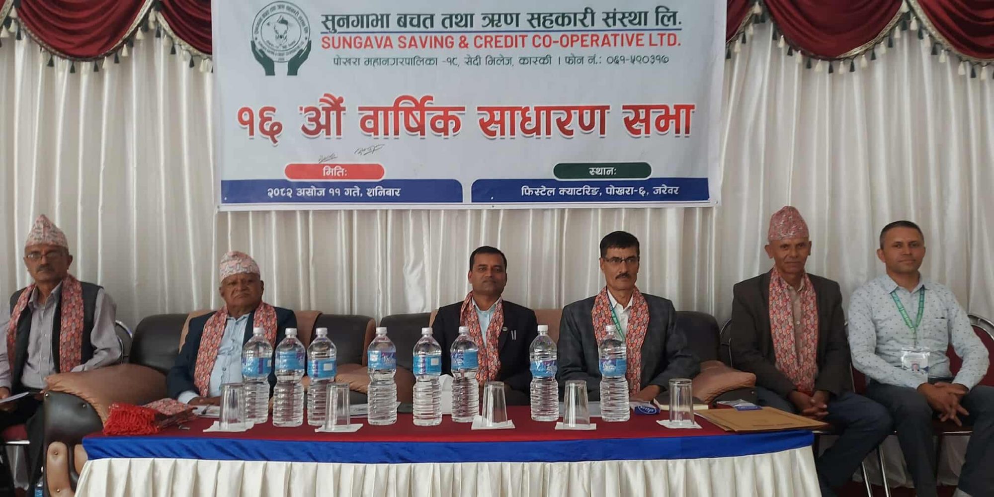 पोखरा । असोज ११ । सुनगाभा बचत ऋण सहकारी संस्था, पोखरा–१८, सेदीबगरको शनिबार १६ औं साधारण सभा सम्मपन्न भएको छ । संस्थाका अनुसार सहकारीले आ.व ८१/८२मा ७ करोड ९ लाख ३५ हजार ५ सय ७६ रुपैया निक्षेप संकलन गर्ने सफल भएको छ । १ करोड १५ लाख २६ हजार शेयर पुँजी रहेको सहकारीले ५ करोड ९१ लाख ८९ हजार २ सय ४६ रुपैया कर्जा लगानी गरेको छ ।