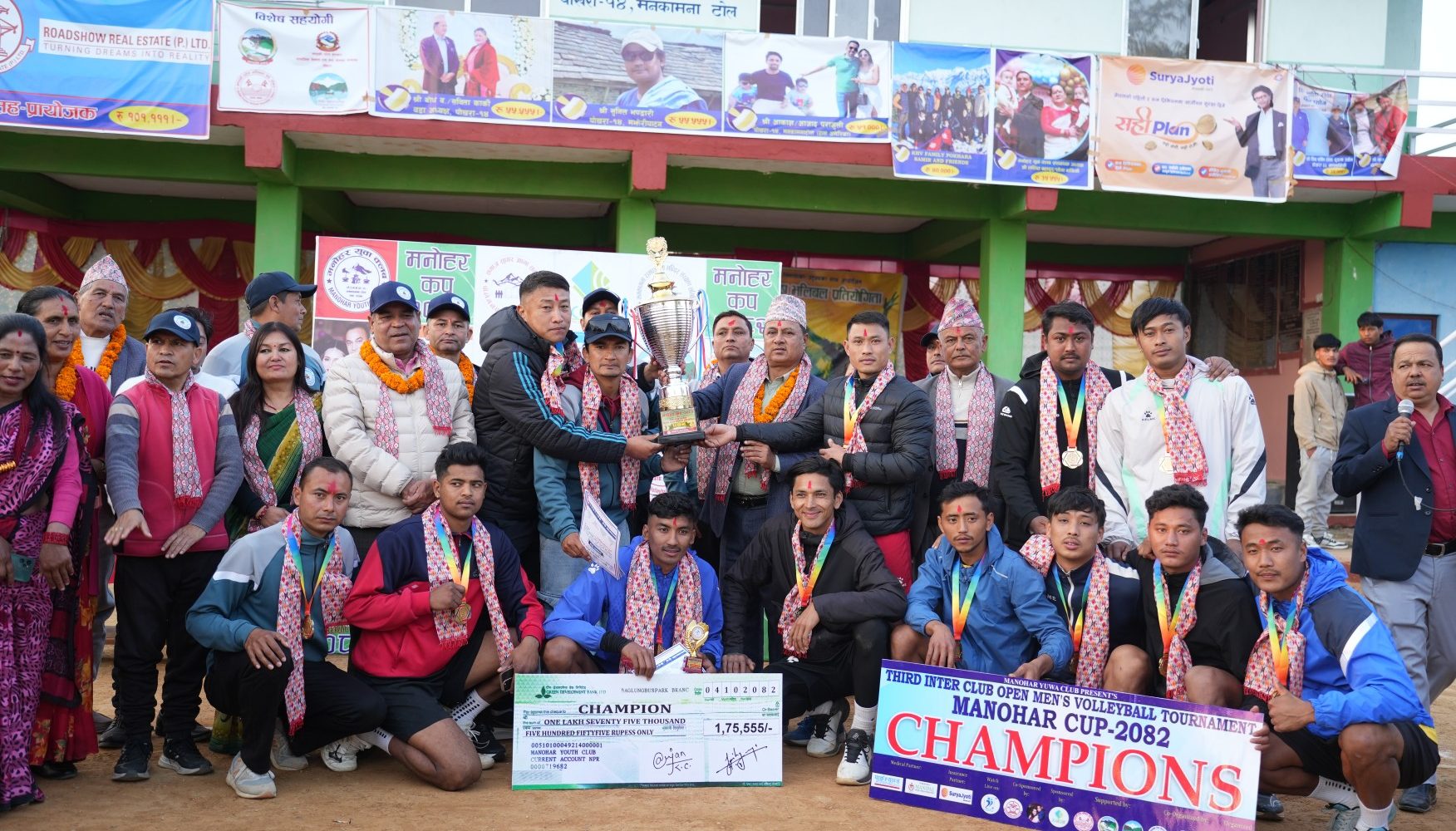 पोखरामा भएको मनोहर कप तेस्रो क्लब स्तरीय खुला पुरुष भलिबल प्रतियोगिताको उपाधि आयोजक टोलीले जितेको छ ।