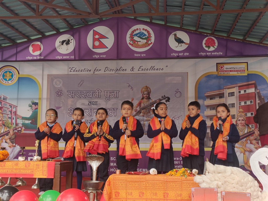 विद्यालयका प्रधानाध्यापक किरण सापकोटाले सरस्वती पूजाको दिन गरिने अक्षरारम्भ शैक्षिक संस्कारको महत्वपूर्ण अभ्यास भएको बताए। उनले भने,