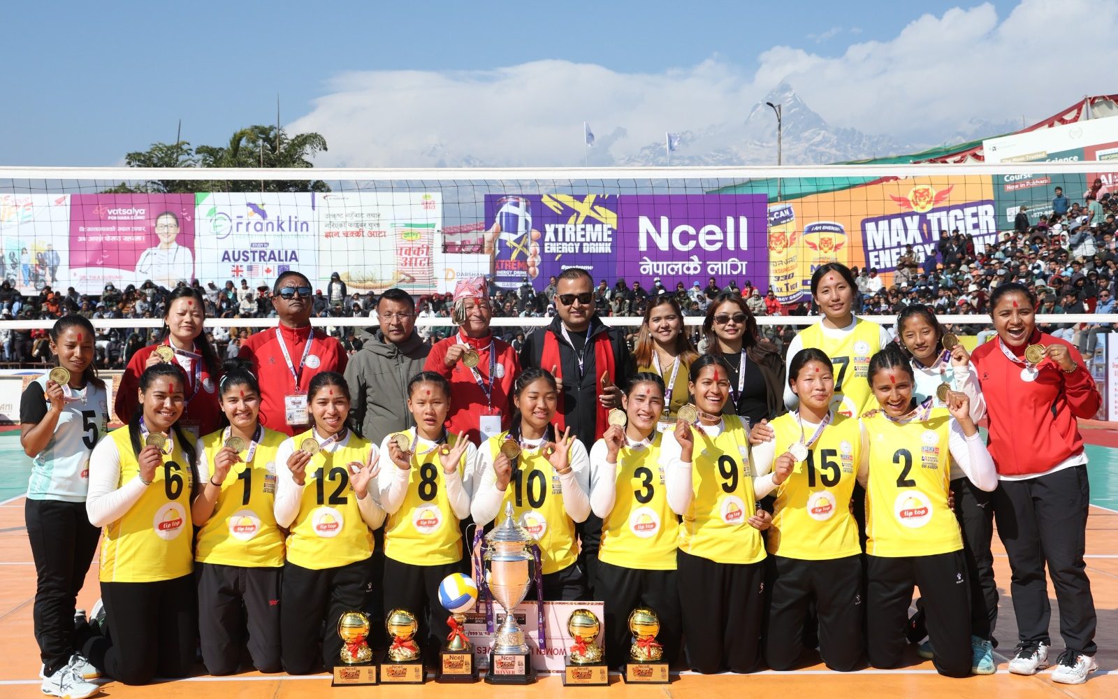 सर्भर प्रतिभा माली, लिविरो शान्तिकला तामाङ, सेटर प्रगती नाथ, ब्लकर सुनिता खत्री, स्पाइकर पथैया र प्रशिक्षक कुमार राई विधागततर्फ उत्कृष्ट बने । उनीहरुले जनही ११ हजार ६६६ हात पारे ।