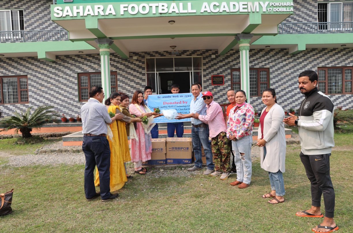 एनआरएनएले सहारा क्लब पोखराद्वारा संचालित सूर्यबहादुर केसी स्मृति सहारा एकेडेमीमा १ लाख रुपैयाँ स्वास्थ्य सुरक्षा सामग्री सहयोग गरिएको छ ।