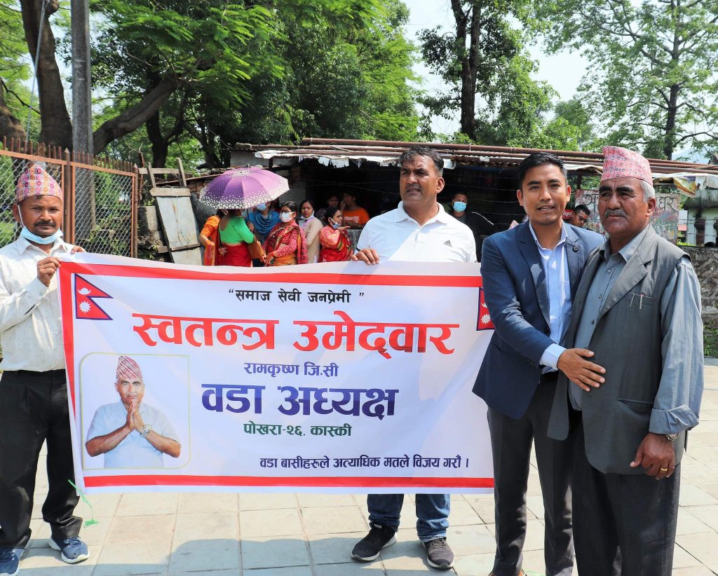 लेखनाथ । आसन्न स्थानिय तह निर्वाचनका लागि पाेखरा २६ मा नेकपा एमालेका नेता रामकृष्ण जि सी. ले वडाध्यक्ष पदमा स्वतन्त्र उम्मेदवारी दिएका छन् ।