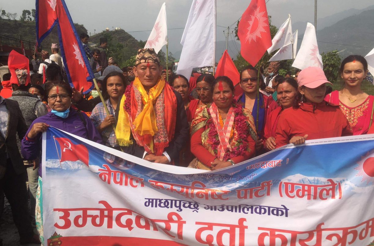 माछापुच्छ्रे गाउँपालिकाको अध्यक्षका एमालेका विक्रम गुरुङ र उपाध्यक्षमा सीता तिवारी अधिकारीले उम्मेदवारी दिएकी छन् ।
