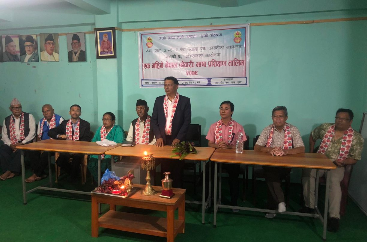 लामाचाौर नेवाः खलः गुठीका अध्यक्ष राम प्रसाद क्षेष्ठको अध्यक्षतामा भएको कार्यक्रममा पोखरा महानगरपालिका वडा नम्बर १९ का अध्यक्ष पुष्पेन्द्र पाण्डे, नेवाः खलः कास्कीका अध्यक्ष अशोक पालिखे, गण्डकी प्रज्ञा प्रतिष्ठानका सदस्य सचिव मनकुमार श्रेष्ठले आफ्ना भनाइ राखेका थिए । नेवारी भाषा प्रशिक्षण कार्यक्रमको प्रशिक्षकमा विक्रम उदास र मधुसुदन जोशी रहेका छन् ।