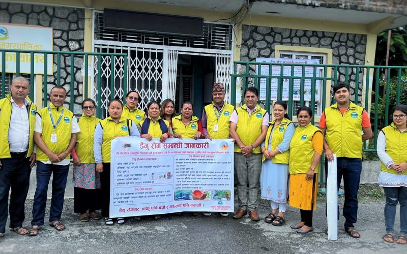 पाेखरा । पाेखरा महानगरपालिका वडा नम्वर ५ मा लामखुट्टेकाे टाेकाईबाट सर्ने डेंगु राेगसम्वन्धी सचेतना कार्यक्रम भएकाे छ ।
