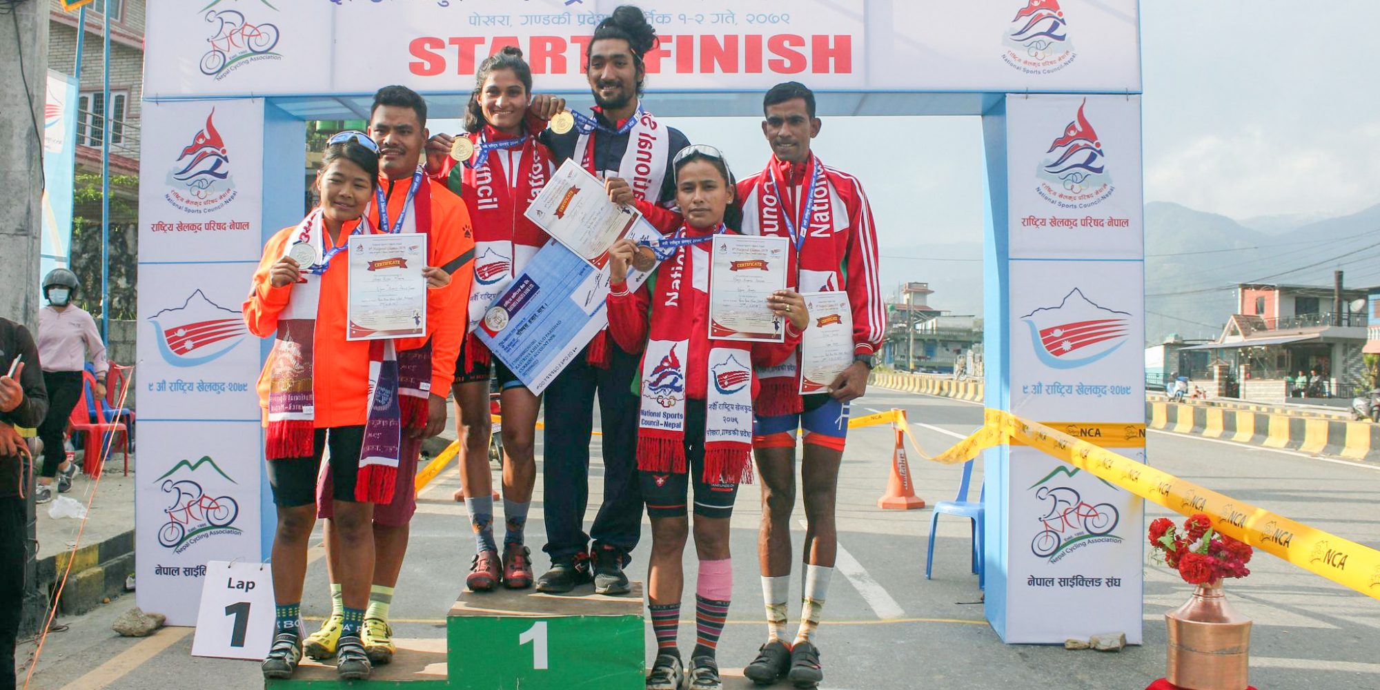 साइक्लिङको रोड रेस मास स्टार्टमा पुरुषतर्फ गण्डकी र महिलातर्फ आर्मीलाई एक–एक स्वर्ण