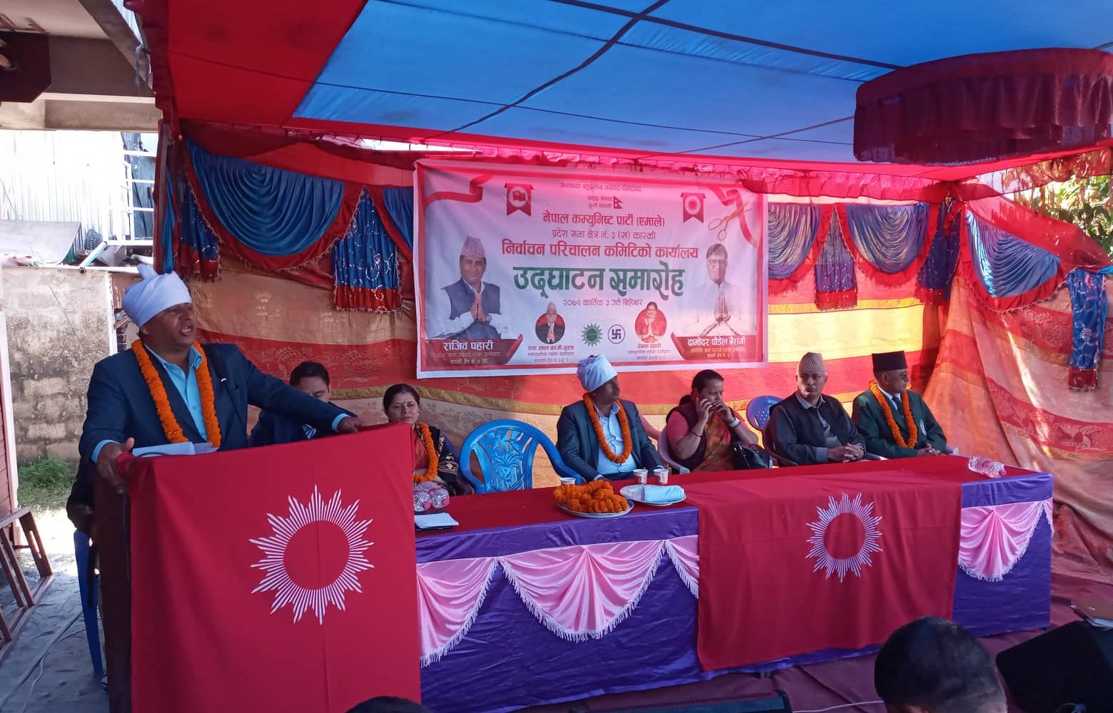 पोखरा ५ मालेपाटनमा नेकपा एमाले, कास्की निर्वाचन क्षेत्र नम्वर ३ प्रदेश निर्वाचन क्षेत्र ‘ख’ को चुनाव परिचालन सम्पर्क कार्यालयको उद्घाटन गरिएको छ । नेकपा एमाले केन्द्रिय पोलिटव्युरो सदस्य जगत विश्वकर्मा, पोलिटव्युरो सदस्य सीता गिता ओली, क्षेत्र नम्बर ३, प्रतिनिधी सभा सदस्य उम्मेदवार दामोदर पौडेल बैरागी, प्रदेश सभा ३ ‘ख’ उम्मेदवार राजिव पहारी, समानुपातिक उम्मेदवार लालकाजी गुरुङ्ग लगायतले बिहीबार एक समारोहका विच कार्यालयको उद्घाटन गरेका हुन् ।