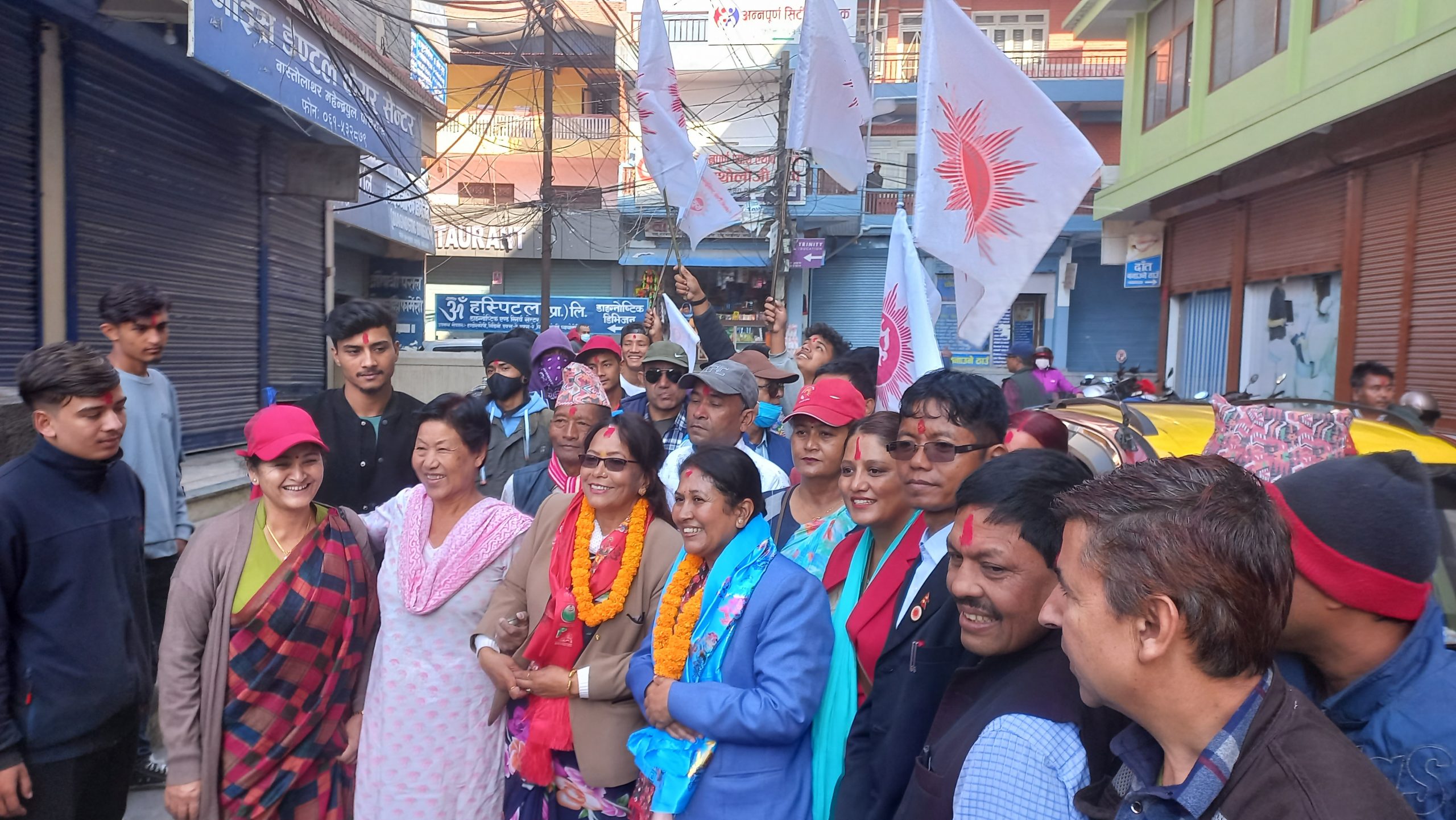 उनले सामाजिक विभेद र आर्थिक असमानताका कारण महिलाहरु राजनैतिक प्रतिष्पर्धी बन्नबाट बञ्चित भएपनि विद्या भट्टराई र मिना गुरुङ यतिखेर सिंगो आधा आकाश ढाकेका महिलाको लागि प्रेरणाका श्रोत बनेको बताईन् । ‘सुशासनयुक्त समाज निर्माणमा पुरुषको तुलनामा महिला बढी जिम्मेवार बन्ने अवसर प्राप्त गरेका महिलाको कार्य दक्षताले पुष्टी गरेको छ ।’ उनले भनिन्–‘प्रचारप्रसारको क्रममा घरदैलो कार्यक्रममा महिला उम्मेदवार पाउँदा मतदातामा समेत उत्साह बढ्ने देखियो । अवसर पाए महिला पुरुष भन्दा कुनै क्षेत्रमा पनि कमि हुँदैनन् भन्ने विश्वासका साथ मुलुकका सबै राजनैतिक पार्टीले प्रत्यक्ष निर्वाचनमा ५० प्रतिशत महिलालाई उम्मेदवार बनाउनु पर्दछ ।’