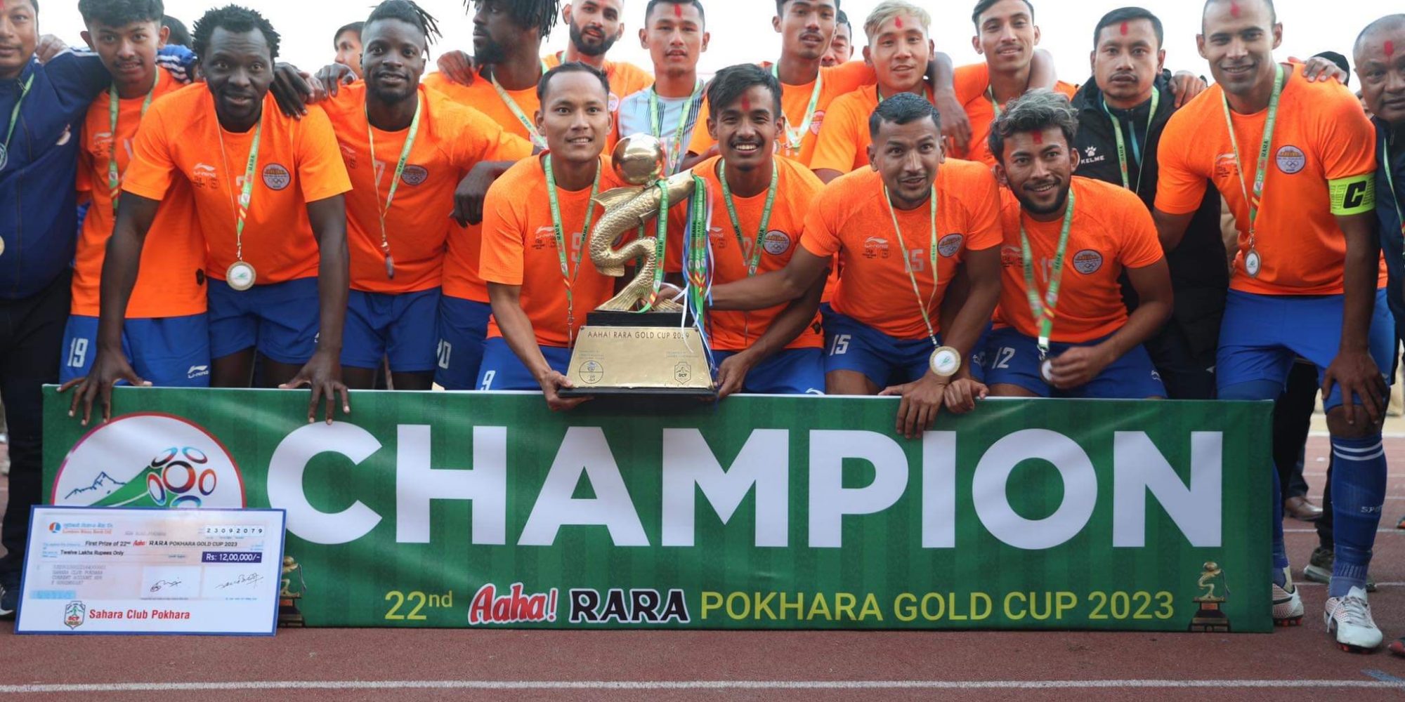 पोखरा । आज पोखरा रंगशालामा सम्पन्न २२ औं आहा रारा पोखरा गोल्डकपको फाइनल खेल संकटाले बाजी मारेको छ । संकटाले अमेरिकाको भूटनिज यूथ स्पोर्टस क्लब (बिवाइएससी) लाई ३-२ गोल अन्तरले जित्दै दोस्रो पटक च्याम्पियन बनेको हो । यस अघि २०७७ सालमा आहा रारा गोल्डकपको च्याम्पियन भएको थियो ।