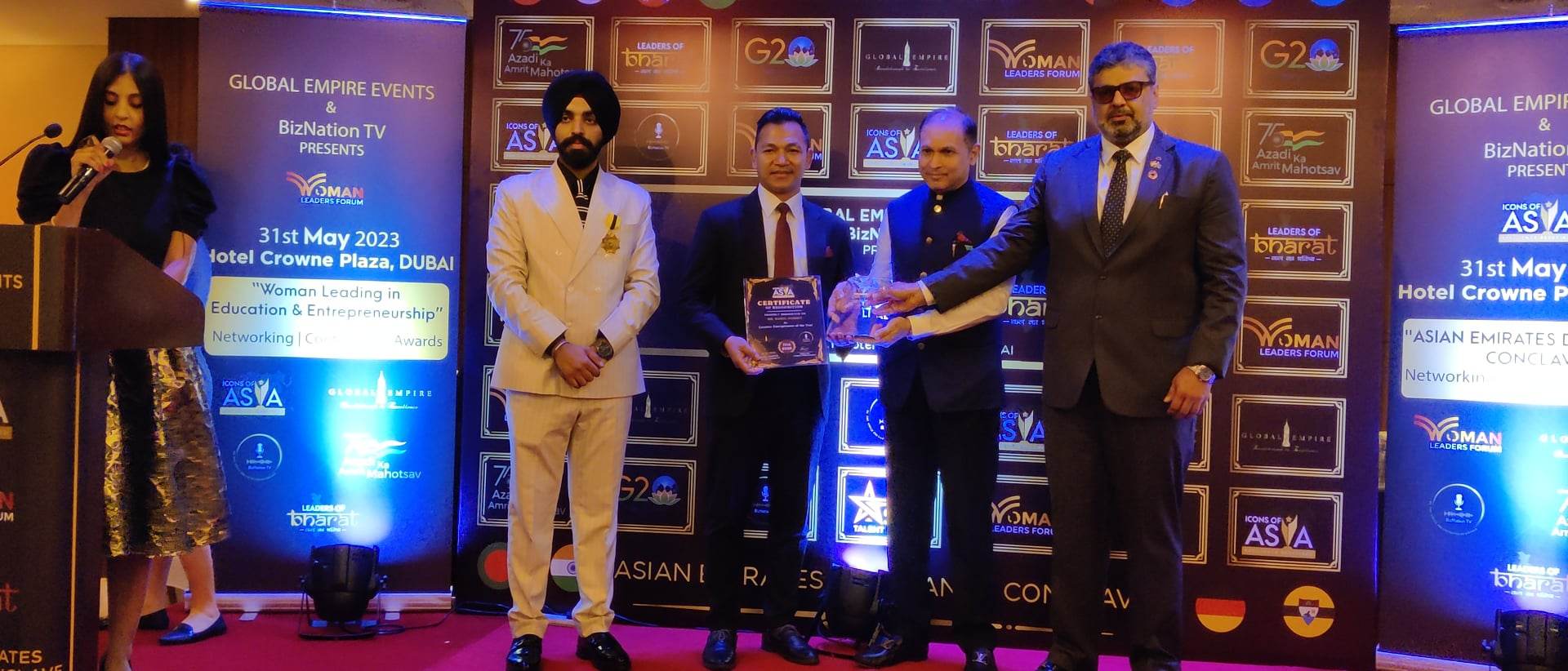 उनलाई ग्लोबल एम्पायर र बिजनेसनका प्रबन्ध निर्देशक उदयवीर सिंह बिन्द्राले सम्मान गरेका हुन् । आइकन अफ एसिया अवार्डमा ८ राष्ट्र भन्दा बढिकाे सहभागिता रहेकाे थियाे ।
