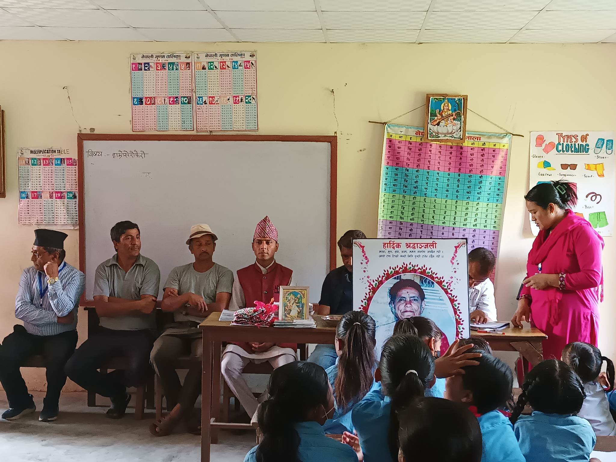 विद्यालय व्यवस्थापन समितिका अध्यक्ष नारायण बहादुर कुँवरकाे अध्यक्षतामा भएकाे कार्यक्रममा स्वागत विद्यालयका प्रधानाध्यापक डिल्लीराम तिम्सिना र सञ्चालन विद्यालयकी कम्प्युटर शिक्षिका ईन्दु पुनले गरेकी थिईन् ।