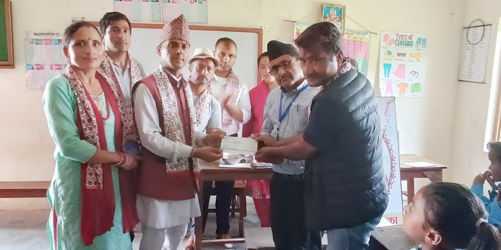 आईतवार समाजका अध्यक्ष पं. हरिशरण पौडेल सहितकाे समाजकाे टाेलीले विद्यालयका प्रधानाध्यापक डिल्लीराम तिम्सिना र विद्यालय व्यवस्थापन समितिका अध्यक्ष नारायण बहादुर कुँवरलाई २५ हजार रुपैयाँकाे चेक हस्तान्तरण गरेका हुन् । विद्यालयमा अहिले एउटा मात्र कम्प्युटर उपलव्ध छ ।