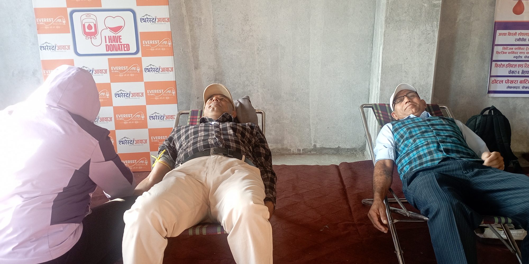 ‘नियमित रक्तदान गरौं, जीवन बचाउने अभियानमा सहभागी बनौं’ भन्ने मूल नाराका साथ आयोजित एफएमको रक्तदान कार्यक्रममा ३१ जनाले पहिलो पटक रक्तदान गरेका छन् । रक्तदानमा सशस्त्र प्रहरीको मुक्तिनाथ बाहिनी, नेपाल प्रहरी, कालिगड संघ कास्की,फिस्टेल लज, जिफन्ट, इन्न्डियन पेन्सन क्याम् भू पू गोर्खा, नागरिक समाजलगायतको संस्थागत सहभागिता रहेको थियो ।